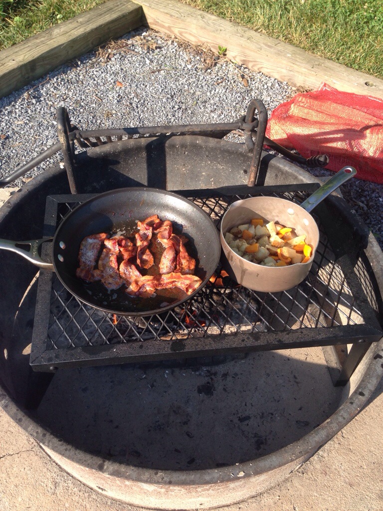 Happy to have not been eaten by a bear the next morning was filled with a spectacular sunrise over the mountains, blissful 63-degree weather and a campfire breakfast of bacon, eggs, and potatoes and peppers.